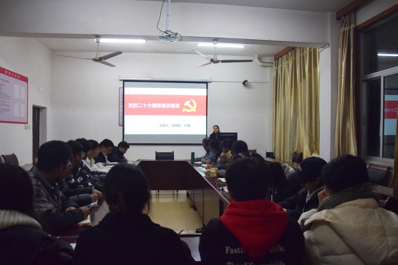 为了让大学生党员更好地学习领会党的二十大精神,2022年12月6日1830,学院党委副书记叶健在院办212室为全体本科生党员宣讲党的二十大精神。