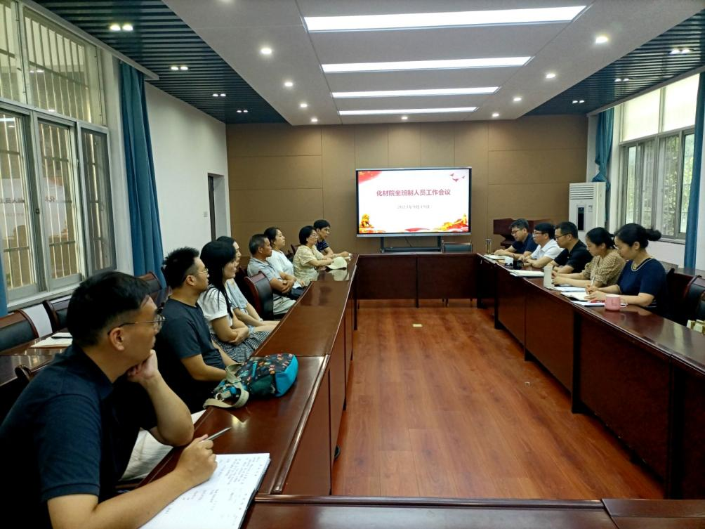 2023年9月19日下午,化材院组织召开坐班制人员工作会议,学院党政领导和全体坐班制人员参加会议。